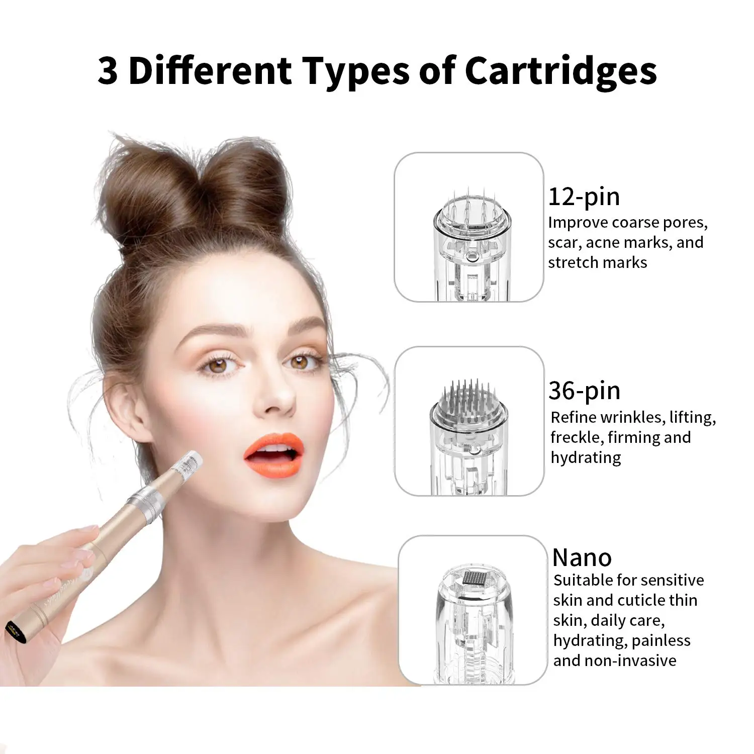 Our electric microneedling pen can be used with your suitable skin care products. It helps promote the absorption of skin care essence, firm and lift the skin to make the skin smoother. It also helps to minimize many common skin problems.
