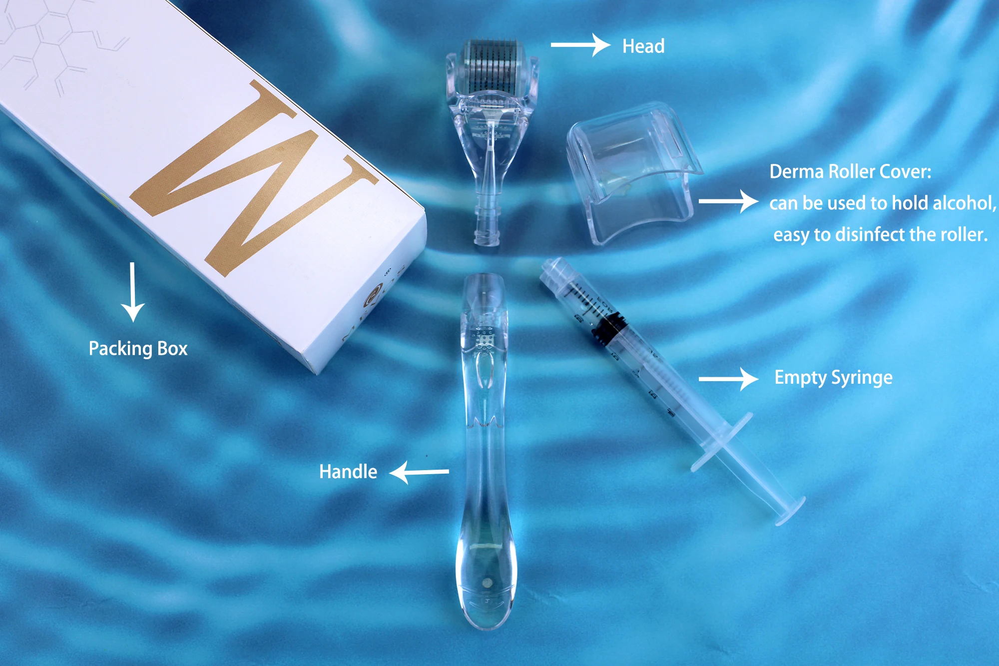 1pc/box(1 derma roller head+1derma roller handle+1 empty syringe, customer can use their own skin care product with this syringe )